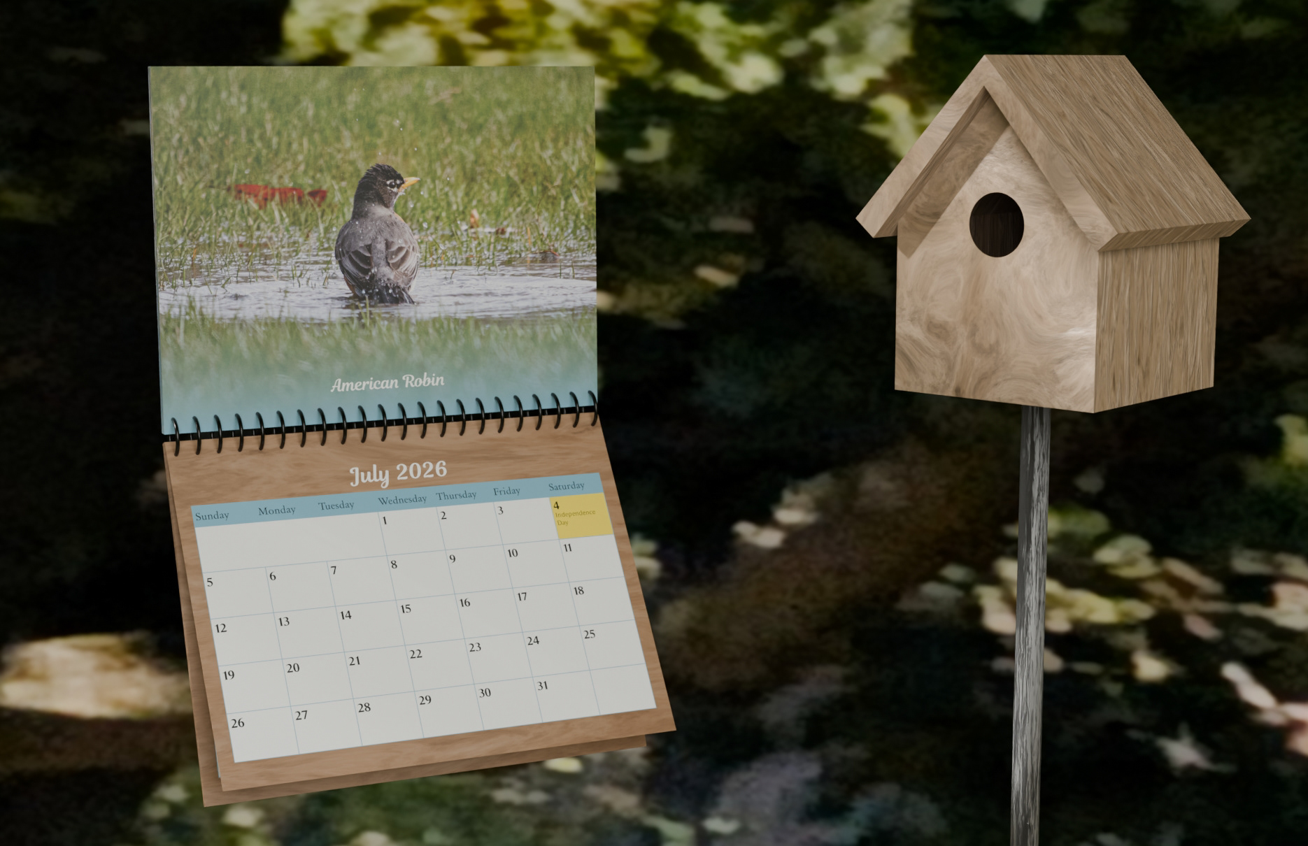 For the calendar layout I wanted the holidays to be very easy to identify so I highlighted them in yellow. I also roughly aligned the season of the photo and the season of the month so that the bird fits with the month that it is on.