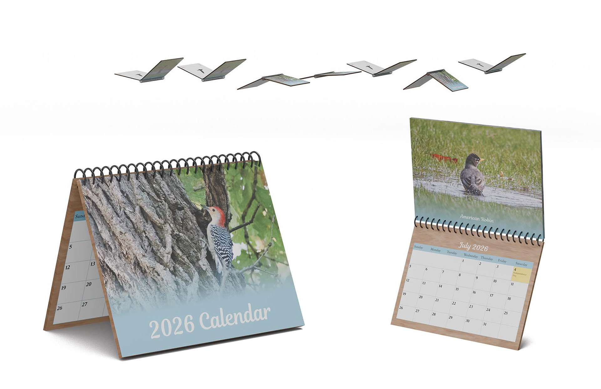 This project was to create a calendar with any topic of our choosing. I decided to make a bird calendar because I enjoy photographing wild birds. All the photos I used in this project are from my time birding. This was also a great exercise for me because I learned how to make a calendar very efficiently. This is done by creating one set of pages as a template and then changing the holidays and images on that template.